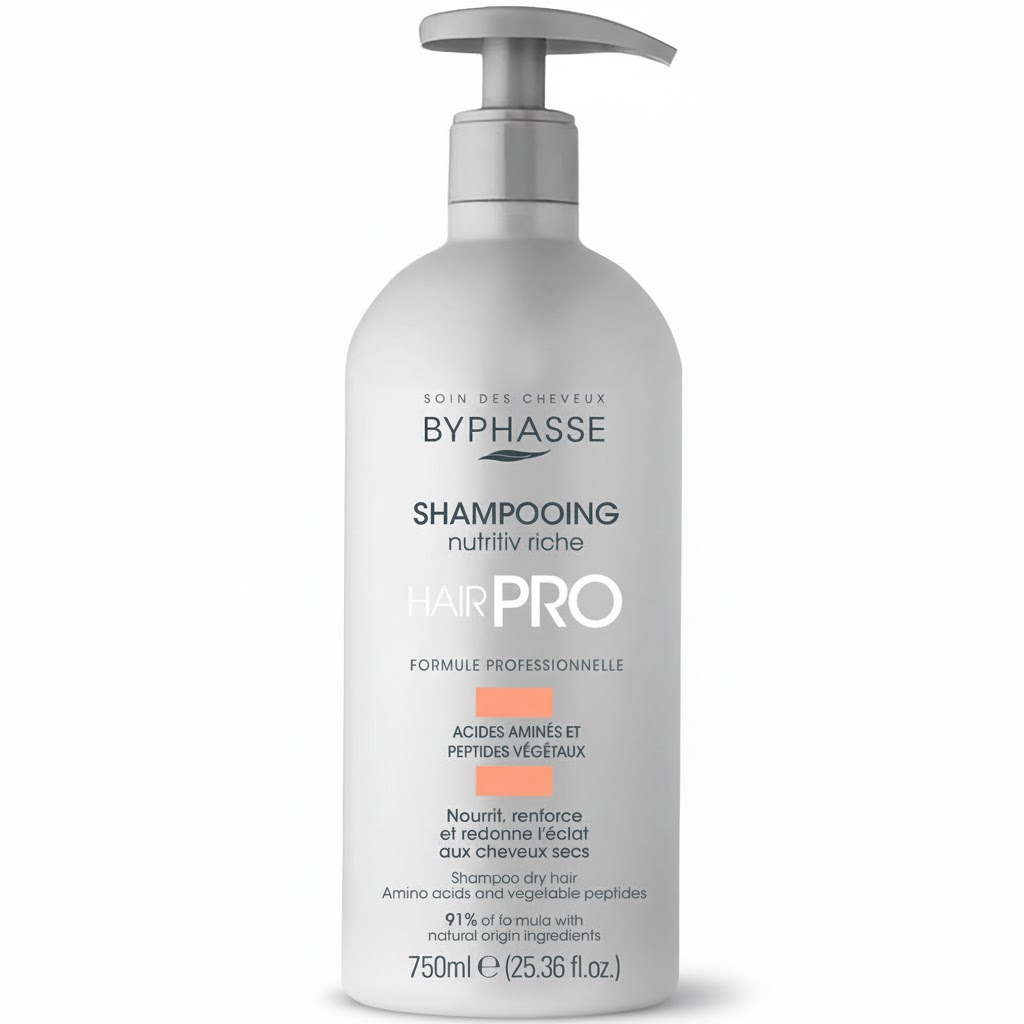 موهای خشک و آسیبدیده نه تنها ظاهری کدر دارند، بلکه به دلیل کمبود مواد مغذی، ساختار داخلیشان تضعیف شده و در برابر عوامل فیزیکی و شیمیایی بسیار شکننده هستند. شامپوی BYPHASSE مدل Hair Pro Nutritiv Riche یک شامپوی معمولی نیست؛ بلکه یک درمان غنی (Riche) است که بر اساس آخرین دستاوردهای بیوتکنولوژی برای موهای بسیار خشک (Cheveux Secs) طراحی شده است. تمرکز این محصول بر رساندن عناصر سازنده به عمق ساختار مو برای ترمیم و تقویت ماندگار است.