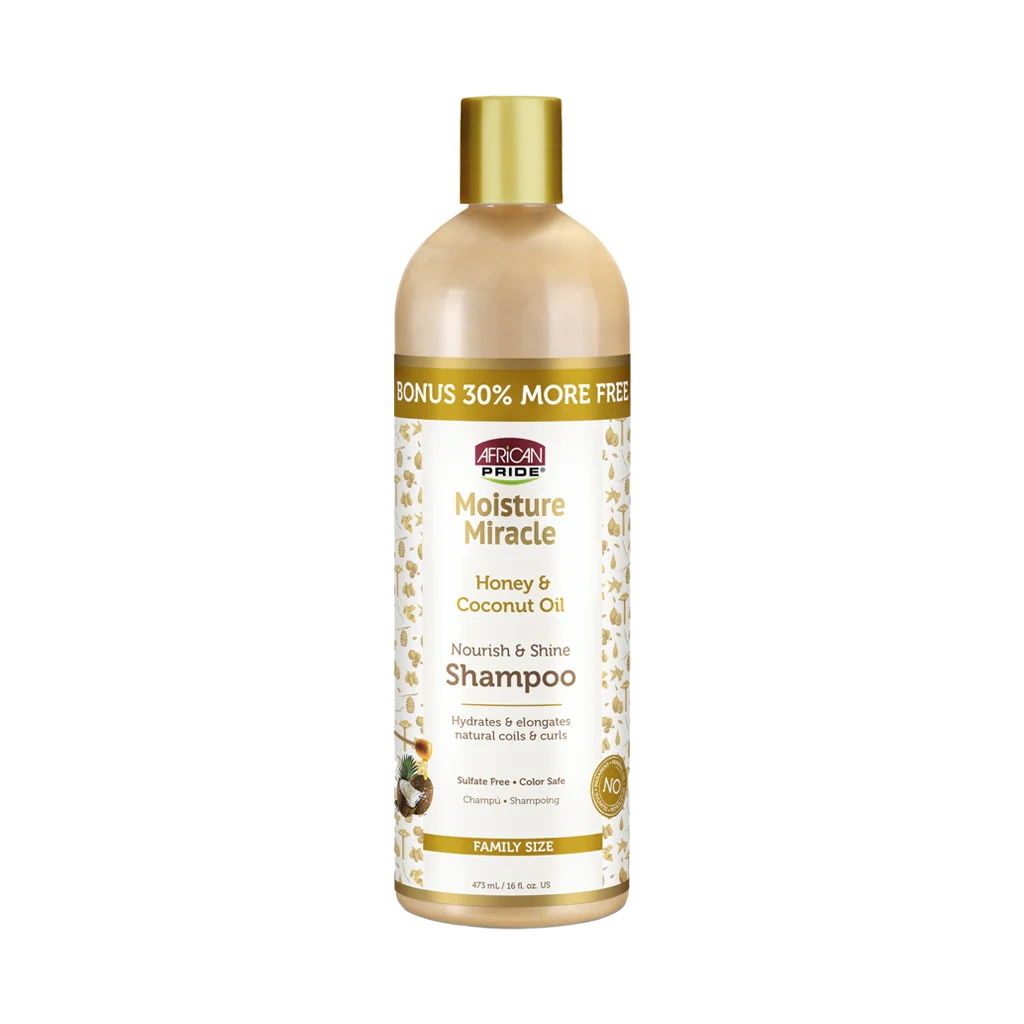 شامپو مغذی و براق کننده موی فر آفریکن پراید مدل Moisture Miracle