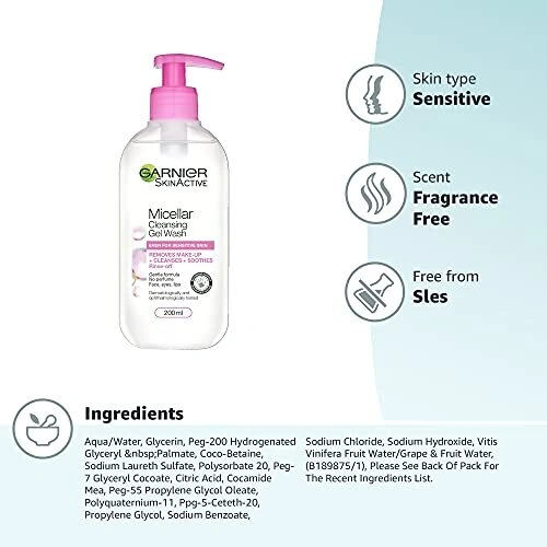 ژل میسلار گارنیر برای پاکسازی پوست حساس حجم ۲۰۰ میلیلیتر، یک شوینده ملایم و موثر برای روزانه پوست است. این ژل با فناوری میسلار، آلودگیها، چربی اضافه و آرایش حتی چشم و لب را بدون نیاز به مالش شدید پاک میکند.